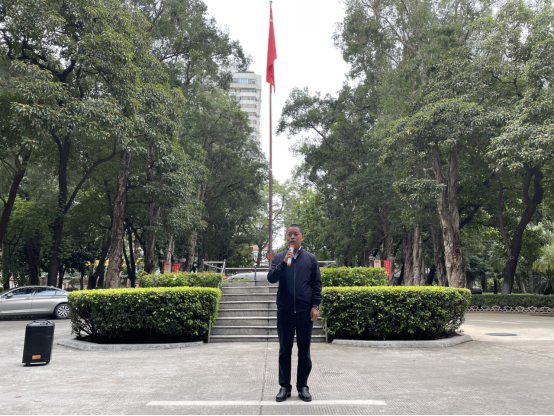 7时30分升旗仪式正式开始,国旗护卫队成员迈着铿锵有力的步伐,昂首挺胸,护送国旗,在全体师生的注视下,走向升旗台。伴随着《义勇军进行曲》雄壮优美的旋律,升旗手鲜艳的五星红旗冉冉升起,全体师生肃然起敬,为繁荣昌盛的祖国自豪!建筑类2班谢炜琳同学作为学生代表在国旗下发言。她号召同学们要学会平衡社团与学习,踏踏实实学习,夯实专业基础;切勿志大才疏,要培养与自身凌云壮志相称的能力;爱惜韶华,抓住一分一秒;加强锻炼自我,沟通交流和管理的本事;要尊重他人,同心同德,互爱互敬,同舟共济,共同营造团结友爱的氛围。
