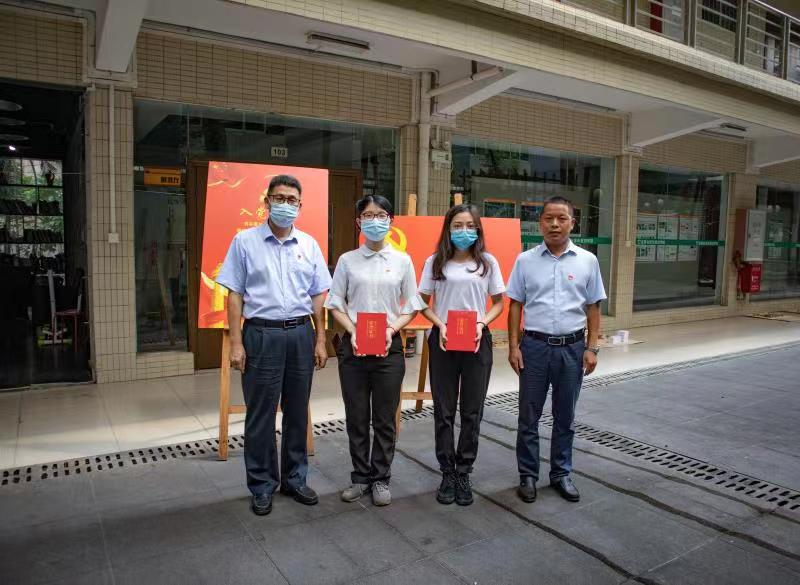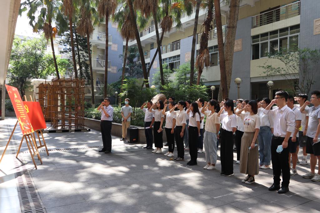 在一号楼庭院举行主题为“不忘初心,筑梦远航”的2021届毕业生党员离校教育,学院党委书记钟兆明,党委副书记李晓伟,党建组织员袁晓聪老师,2020届毕业生党员参加活动。