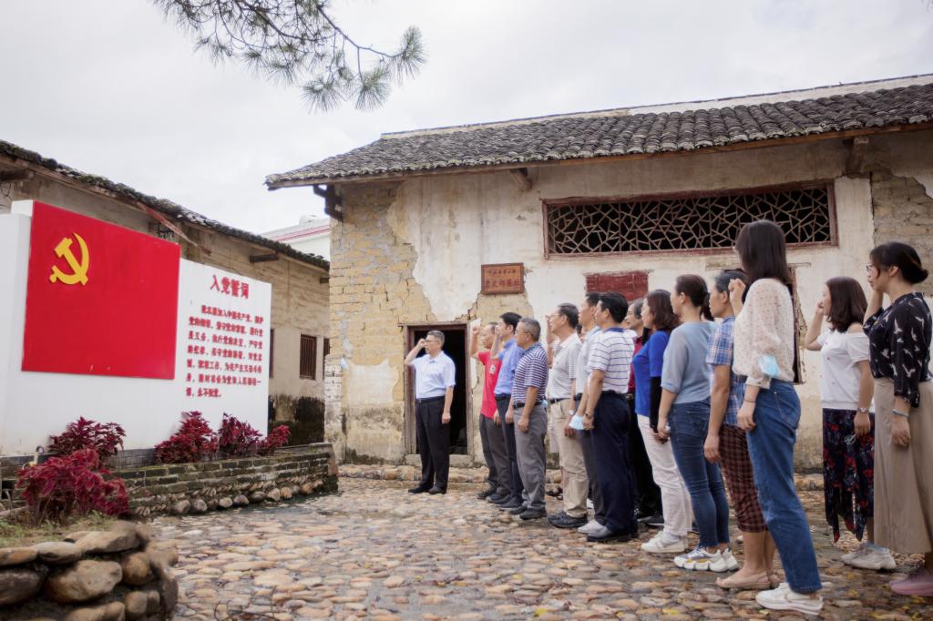 党委书记钟兆明带领全体党员重温了入党誓词。随后,党员们实地走访雅堂村,参观了雅堂村石楼围屋等古建筑,了解保护和修缮情况,深切感受到了雅堂村脱贫攻坚后的巨大变化。