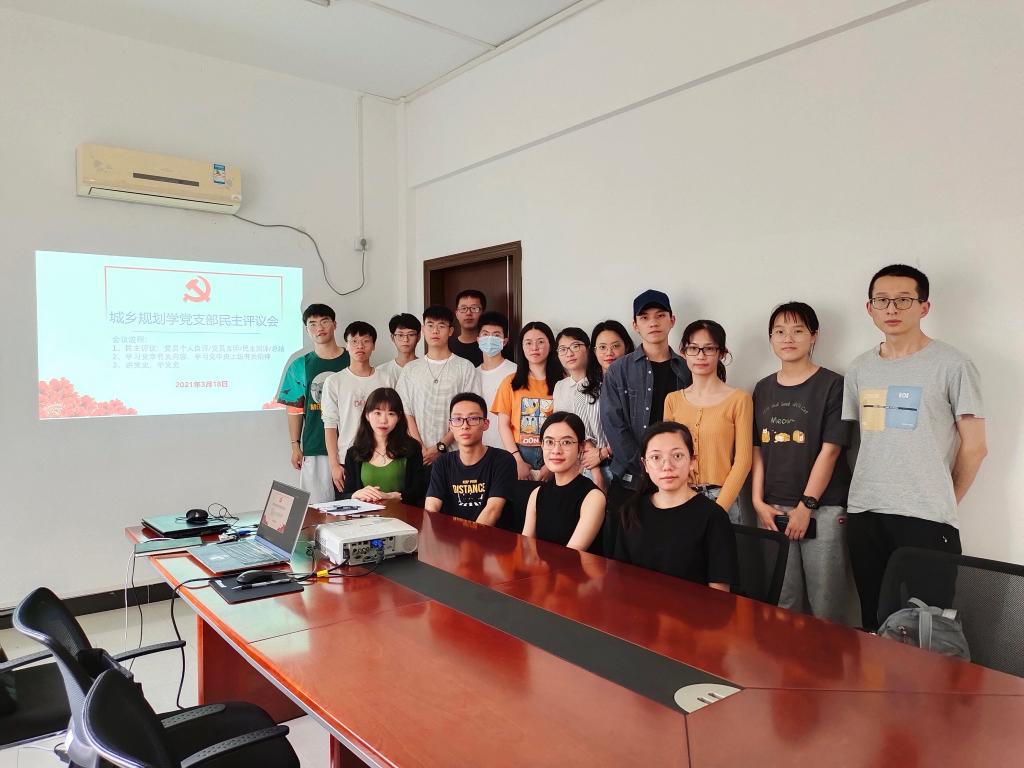 3月18日中午,城乡规划学党支部在1号楼301会议室召开组织生活会。会议内容主要包括民主评议党员、党章党规深入学习和党史学习教育。会议由城乡规划学党支部书记张梦迪老师主持。