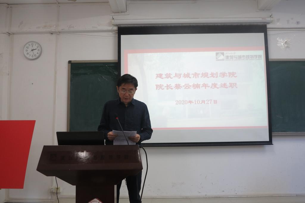 会上,钟兆明书记代表学院班子进行了述职。钟书记从加强思想政治建设、班子能力建设、党风廉政建设以及作风建设等四大方面汇报了上学年度学院班子自身建设的情况,回顾了在班子成员带领下,学院师生在党建、师资、学科、科研、人才培养等方面取得的成效。他感谢全院师生对学院发展作做出的贡献以及对学院班子上学年工作的支持、配合和监督。他表示,在新的学年里,学院班子将坚持以习近平新时代中国特色社会主义思想为指导,围绕建设“省内有话语权、大湾区有影响力、全国有知名度”建筑类学院这一目标,紧紧抓住粤港澳大湾区建设和学校高水平大学的历史性机遇,带领全院师生为切实推动学院高质量发展而继续努力奋斗!