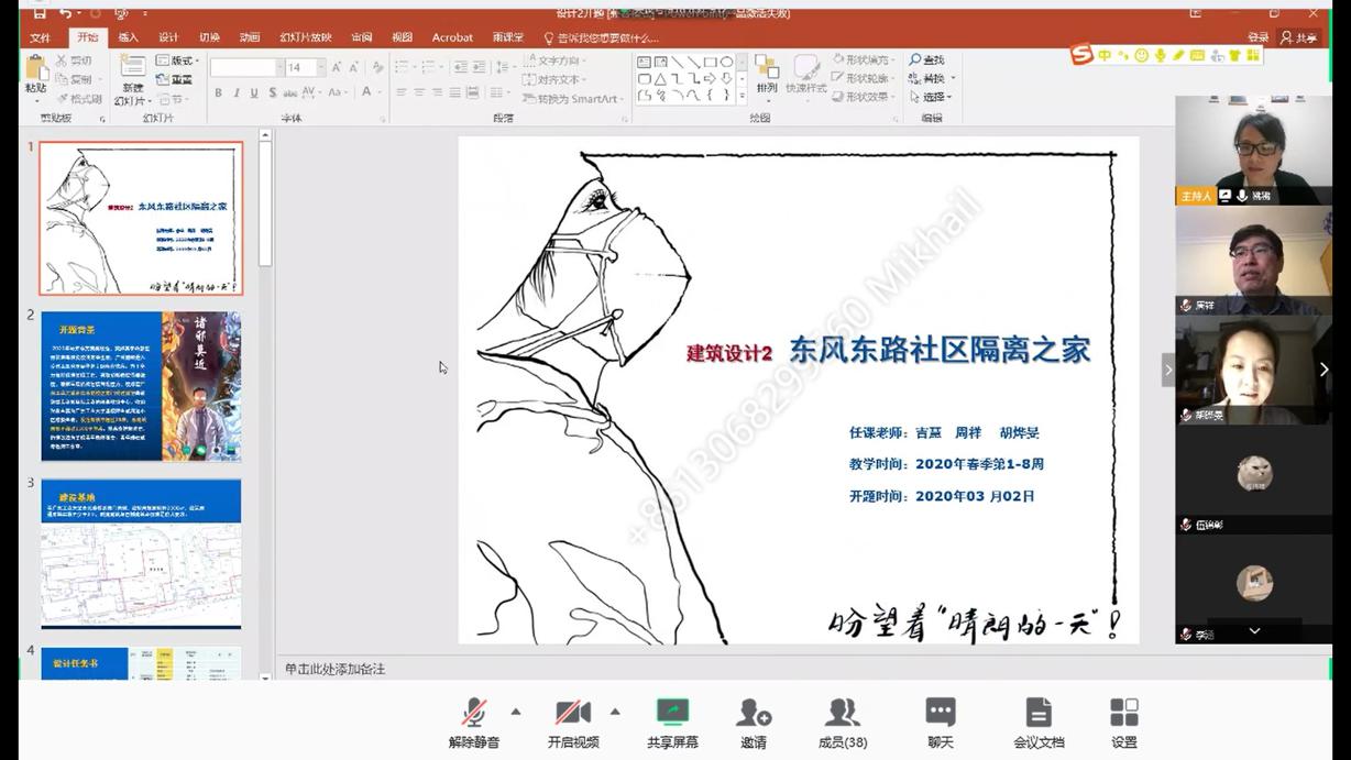 18建筑学(2)班《建筑设计2》(周祥、吉慧、胡晔旻老师)在线教学情况