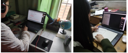 最后,分享线上教与学的场景照片,可以领略老师们的风采和学生们的专注。
