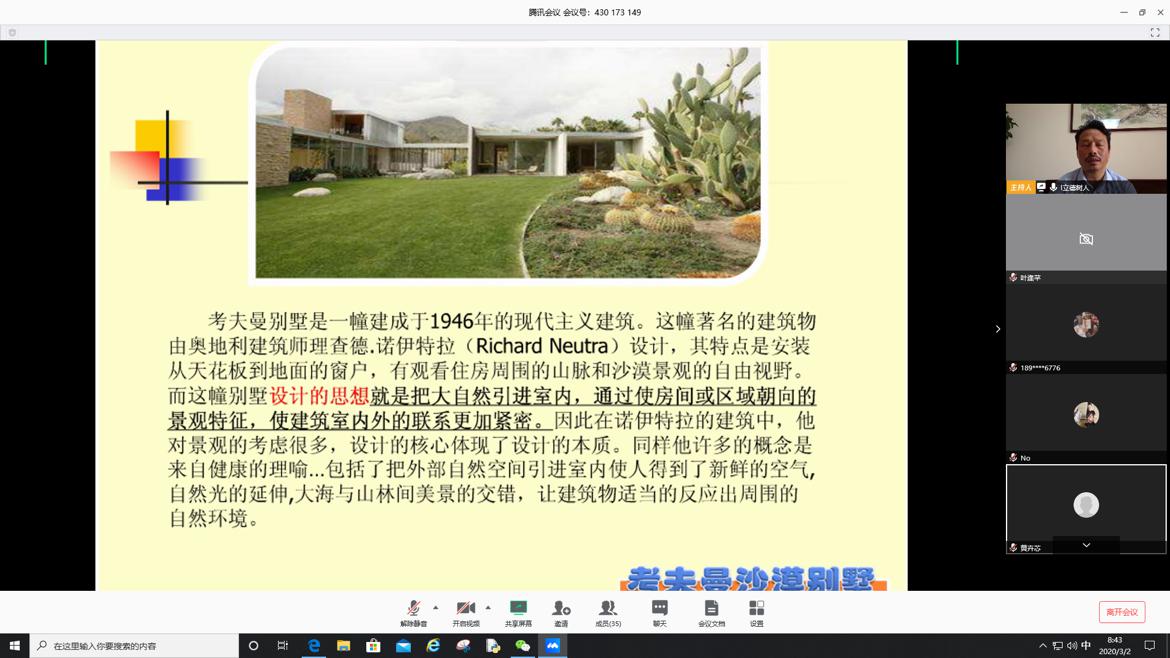 建筑系资深教师廖新为老师的在线教学情况