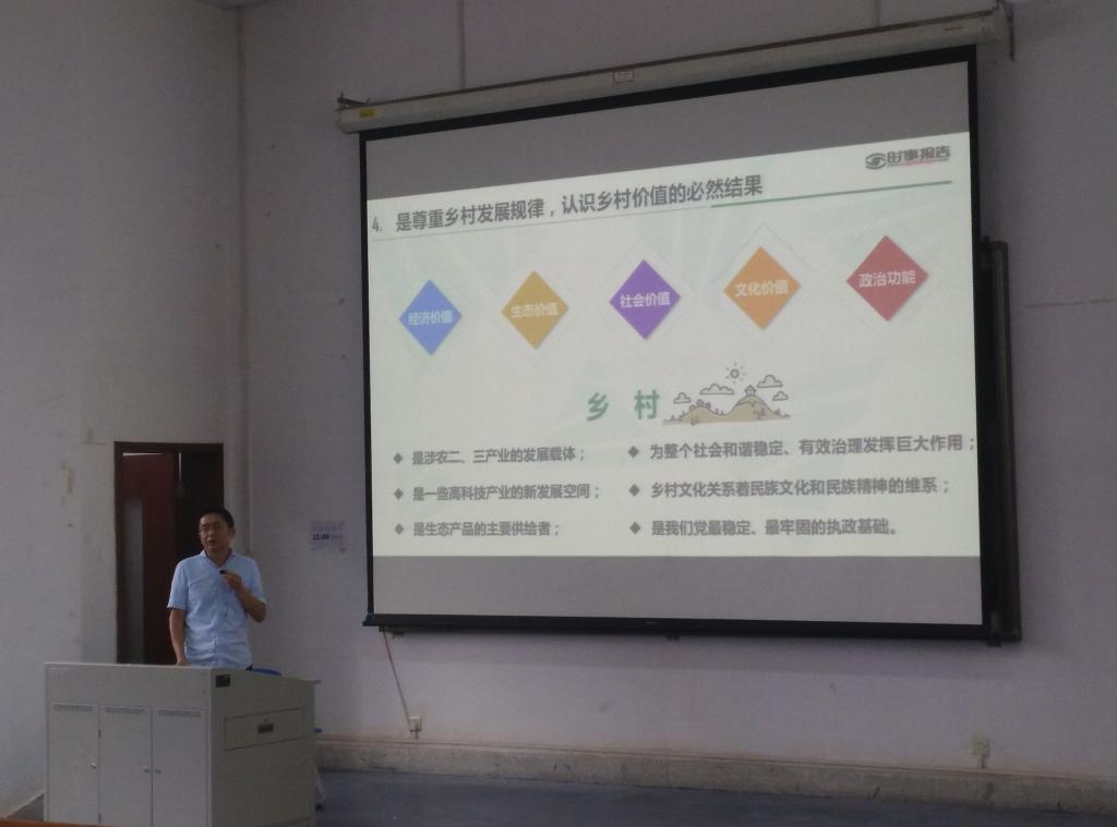 9月11日下午,学院院长蔡云楠同志在5号楼102以“实施乡村振兴战略的重大意义”为题,为学院18级本科生讲授形势与政策课。蔡云楠院长指出,实施乡村振兴战略是新时代农业农村现代化的新征程,是党中央着眼党和国家事业全局,结合我国基本国情农情,遵循农业农村现代化建设规律,做出的重大部署。我国经济社会发展的短板依然是“三农”问题,现代化建设中最薄弱的环节依然是农业农村,收入分配中最突出的矛盾依然是城乡居民收入差距大,资源配置上最大的不平衡还是城乡不平衡。蔡云楠院长鼓励同学们,要树立远大志向与理想,学好建筑与规划本领,将才华投入到国家社会发展一线,为实现乡村振兴的伟大蓝图添砖加瓦。