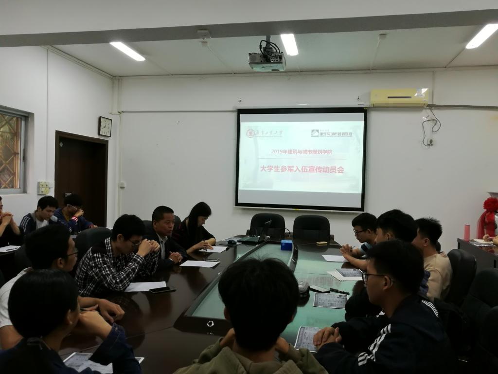 会上,辅导员贾朝强老师向学生干部传达了“全国征兵工作网络视频会议”和“广东省大学生征兵工作网络视频会议”相关活动情况和会议精神,详细介绍了高校征兵政策、报名流程和优抚政策;解答了有关征兵的一些疑问和政策咨询。随后,学院党委李晓伟副书记就征兵工作分享几点:一、大学生参军入伍为军队输送高素质兵员,是新形势下加强国防和军队现代化建设、依托国民教育为部队培养输送高素质人才的必然要求,二、大学生参军入伍是发挥军队资源优势促进青年学生成长成才的重要举措,三、大学生参军入伍培养历史责任感和为国家民族的献身精神,促进大学生全面成长成才,具有重要意义。