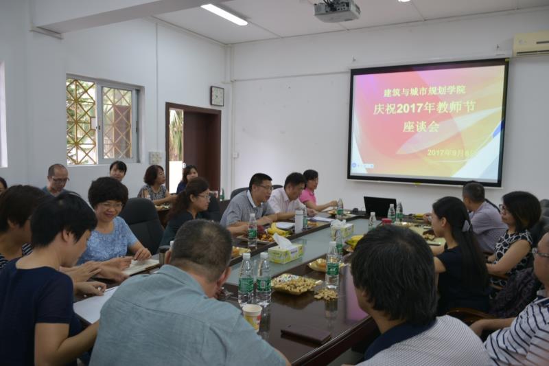 在学院311会议室召开庆祝教师节座谈会。学院党委钟兆明书记、朱雪梅院长、蔡云楠副院长、莫卫文副书记及学院新进教师、国家基金获得者、出国访学教师代表、在学院各项工作中取得优异成绩的教师代表等二十多名老中青教师参加了座谈会。会议由钟兆明书记主持。