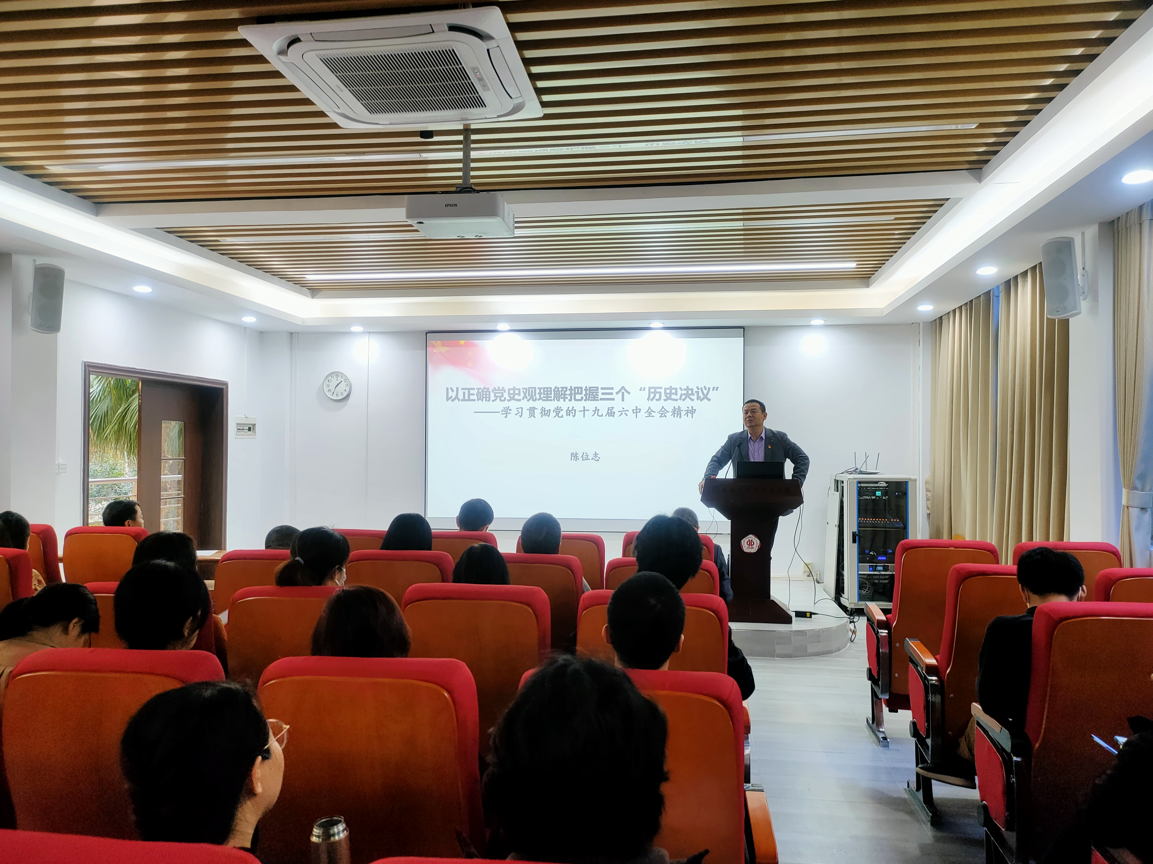 于2021年12月14日下午在学院314报告厅室举行学习贯彻党的十九届六中全会精神专题辅导报告会。马克思主义学院副院长陈位志教授以“从正确党史观理解把握三个‘历史决议’”为题作辅导报告。会议由学院党委书记钟兆明主持,漫画岛