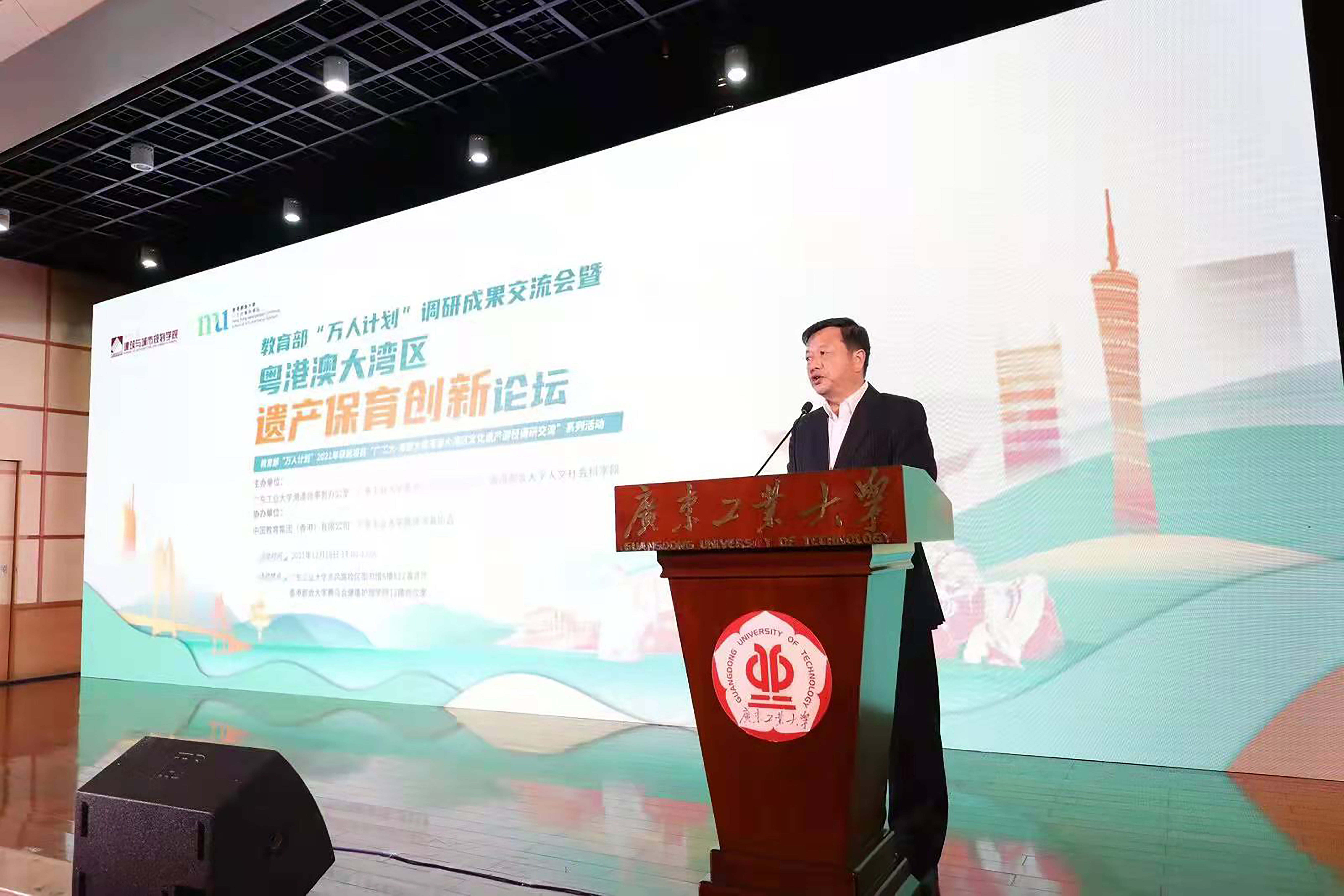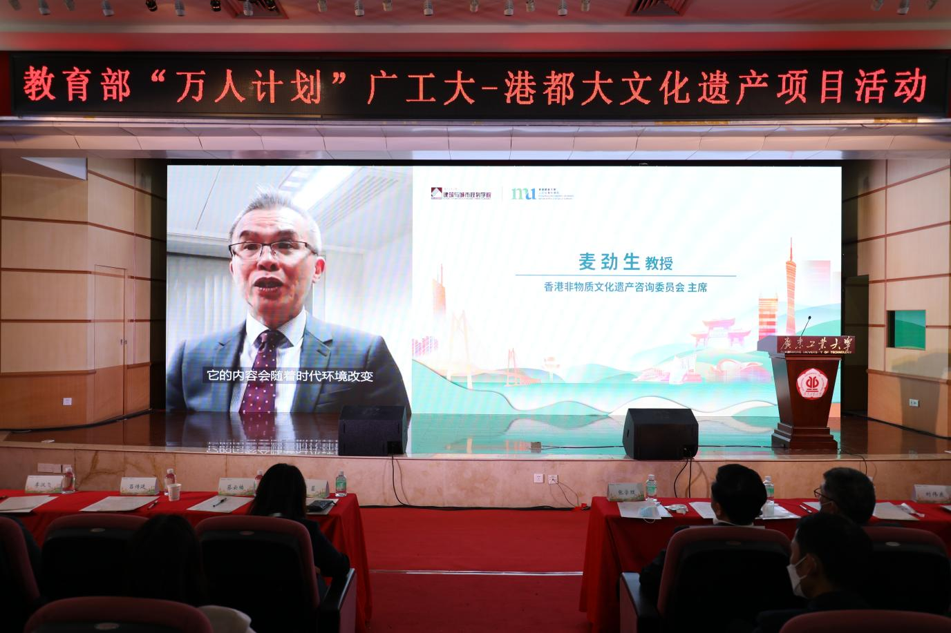 随后,香港非物质文化遗产咨询委员会主席麦劲生教授致辞。他回顾了粤港澳大湾区在非物质文化遗产方面的具体合作,指出大湾区“非遗”之间的联系从来都是一体的、紧密的,近年来粤港澳地区的交流越来越频繁深入,虽然暂时受疫情影响,但大湾区的人文交流前景仍是值得期待的。