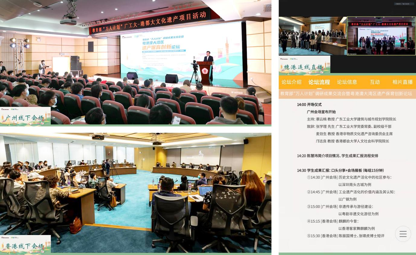 至此,教育部“国家高层次人才特殊支持计划科技创新领军人才”调研成果交流会暨粤港澳大湾区遗产保育创新论坛圆满落幕。该交流项目由我校与香港都会大学共同完成,致力于将分布于广东省内的43条文化游径,与香港、澳门的文化元素深度融合,构建“一体同源”的粤港澳大湾区文化格局。两校的项目团队在过去的半年多的时间里,采取“线下各自调研、线上共同交流”的工作模式,开展了教学研讨、课堂协作、实地调研等丰富的活动,取得了较为丰硕的成果,为加深穗港学界、业界对大湾区人文交流和文化遗产保护的研究与实践提供了一个高水平的学术平台,为推进人文湾区建设发挥非常积极的作用。