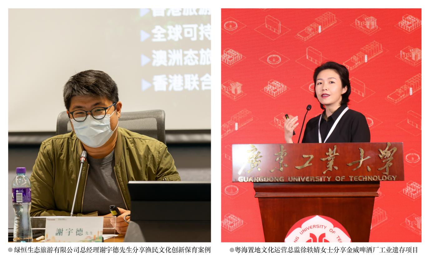 在粤港澳大湾区遗产保育创新论坛环节,与会专家畅所欲言、各抒己见。香港都会大学校友、绿恒生态旅游有限公司总经理谢宇德先生以业界专家的视角分享了三个创新保育渔民文化的案例:“发挥渔民文化特色”、“发展渔业及其合作培训”以及“珍珠业的传统与创新”。粤海置地文化运营总监徐轶婧女士介绍了工业遗产活化项目运营经验与挑战,以深圳金威啤酒厂为例,阐述即地制造的概念,指出文化产业培育与价值重生对工业遗产传承发展极为重要。
