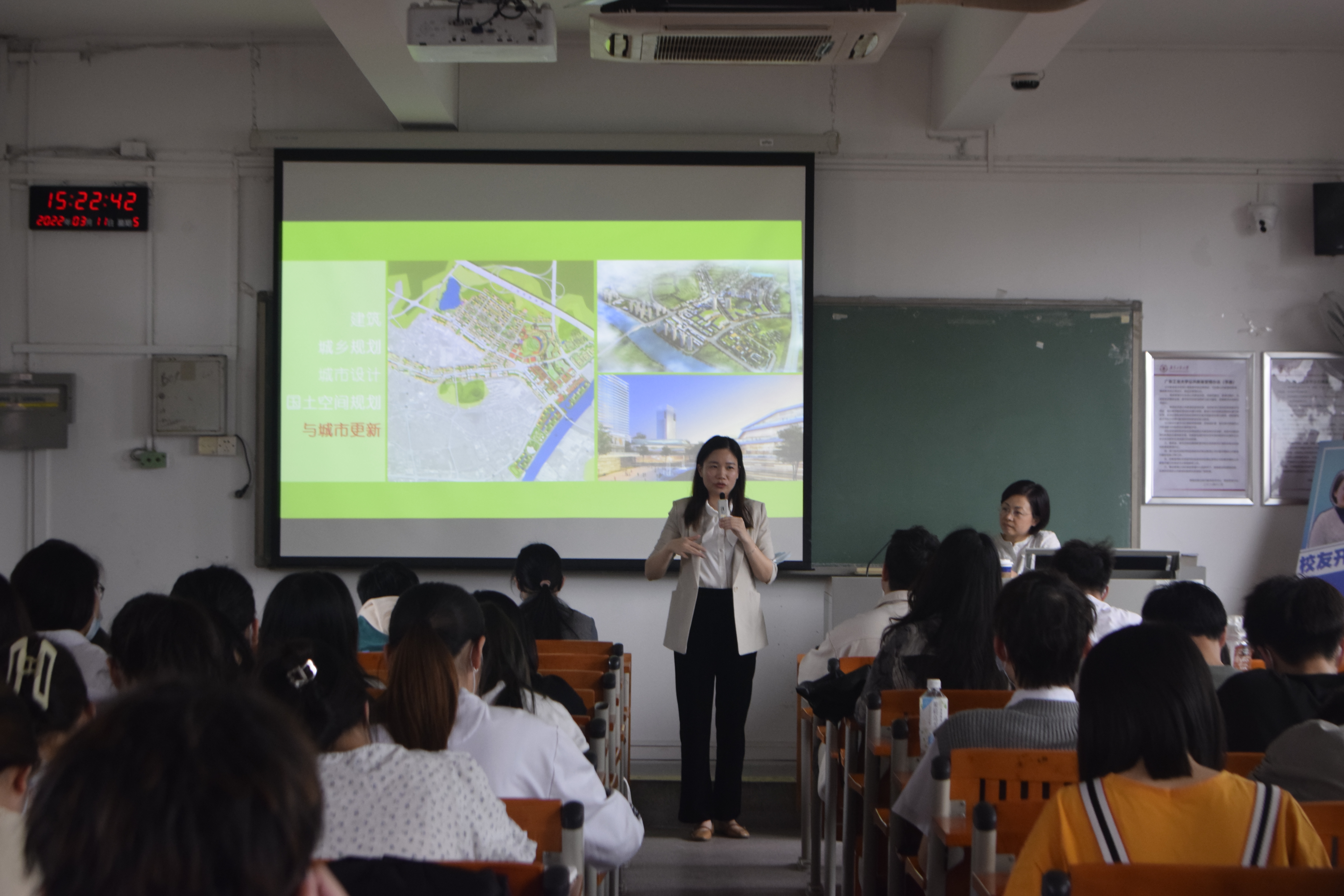 在7号楼601教室举行第二期《校友开讲啦》。现任广州市睿和建筑设计有限公司执行董事的学院首届城乡规划专业毕业生黄天颖师姐以“城规悟思”为主题,从自身的丰富经历出发解读专业,并与同学们深入探讨城市发展规律。本次活动由悦心职业指导工作室承办。